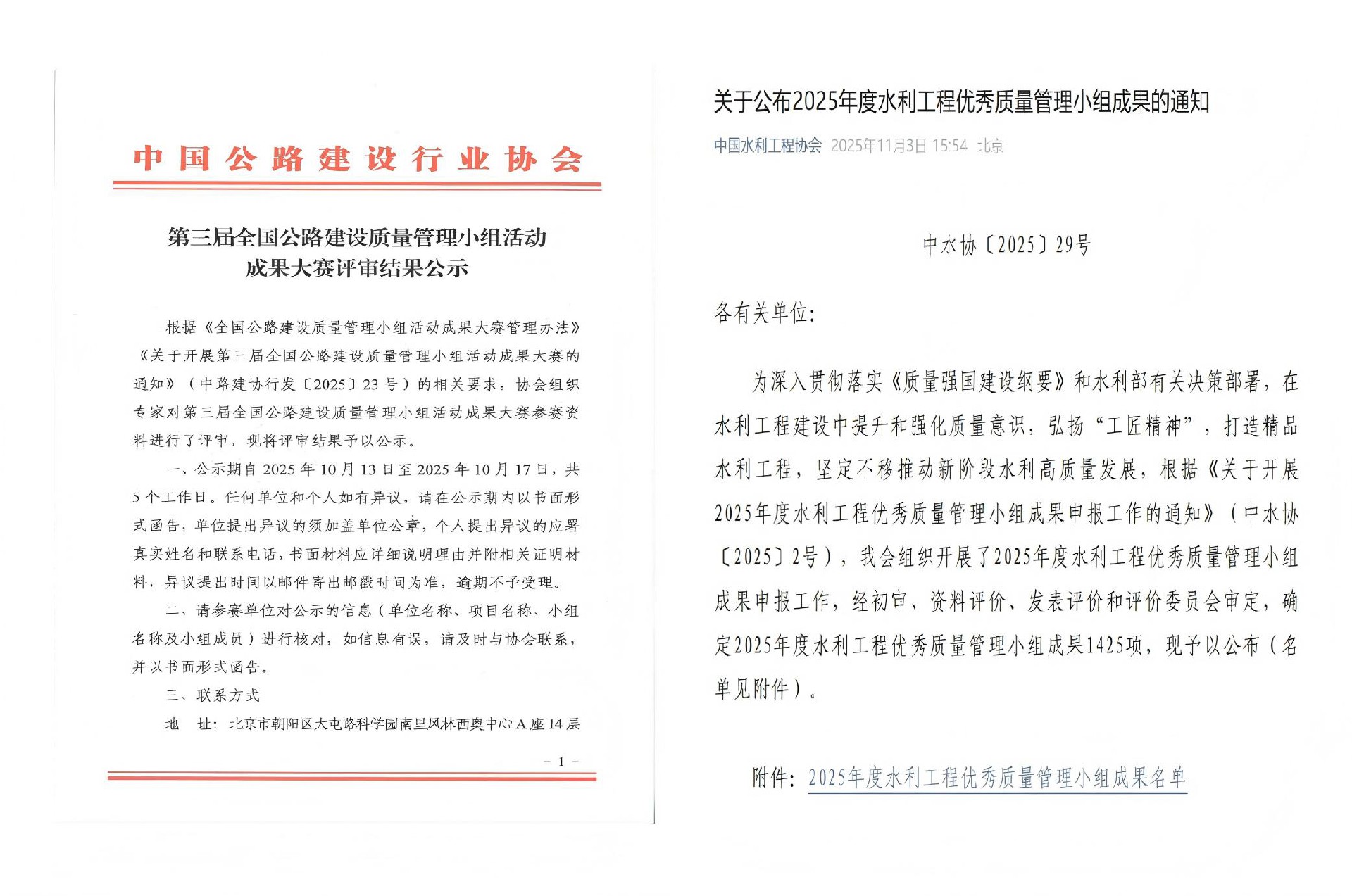 近日,中國公路建設行業協會、中國水利工程協會先后公布了第三屆全國公路建設質量管理小組活動成果評審結果和2025年度水利企業質量管理小組競賽活動結果?!啊ぁぁ?/p>